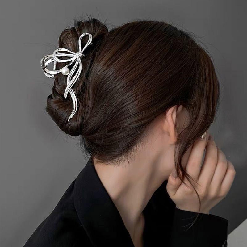 - Product Name: Metal Large Ribbon Hair Claw Clips with Pearl Accent