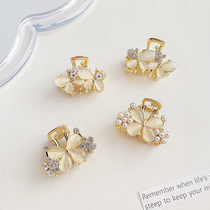 Metal Mini Hair Claw Clips with Opal, Pearl, and Rhinestones