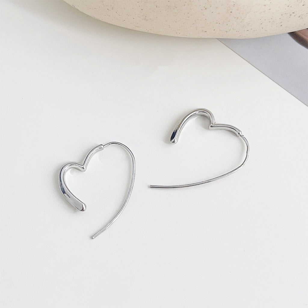 - Product Name: Metal Silver Color Heart Line Hoop Earrings