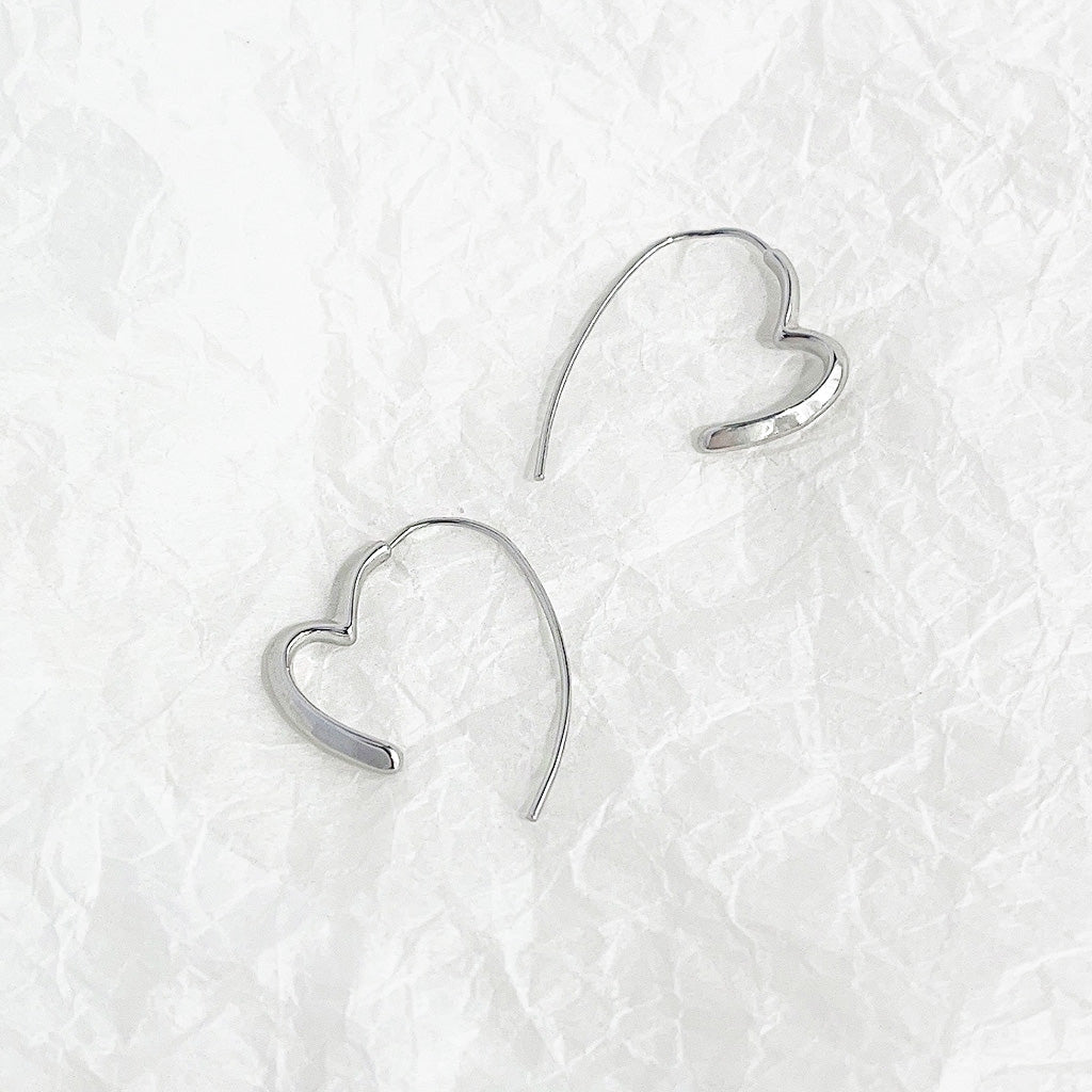 - A clear product shot of the silver heart-shaped earrings against a white background.