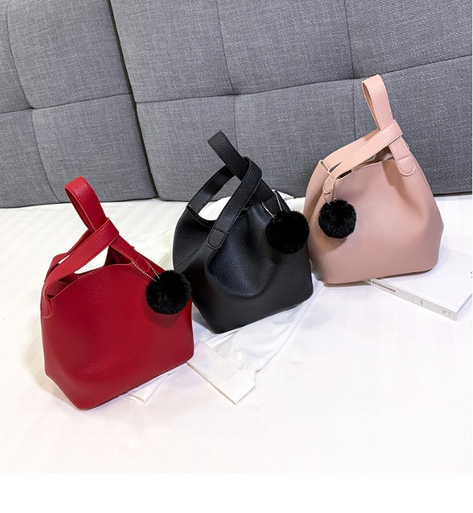 - A collection of vibrant mini tote bags in different colors, each with a matching pom-pom charm.