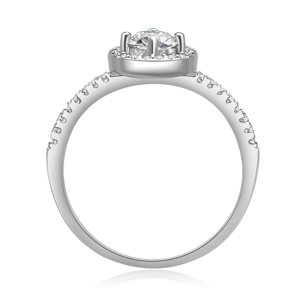 - Angled view of the Rhodium Plated Minimal Circle Ring, displaying the sparkle and brilliance of the central stone.