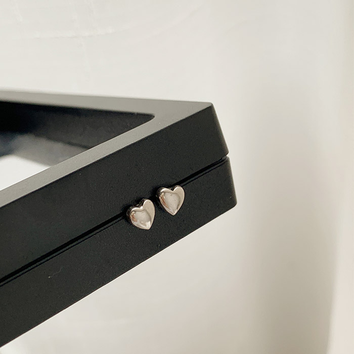 Detailed shot of the minimalist tiny heart studs, highlighting their simple design.