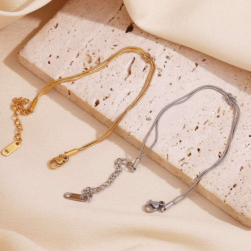 - Structure: A sleek and modern double-layered thin snake chain (0.9 mm width).
