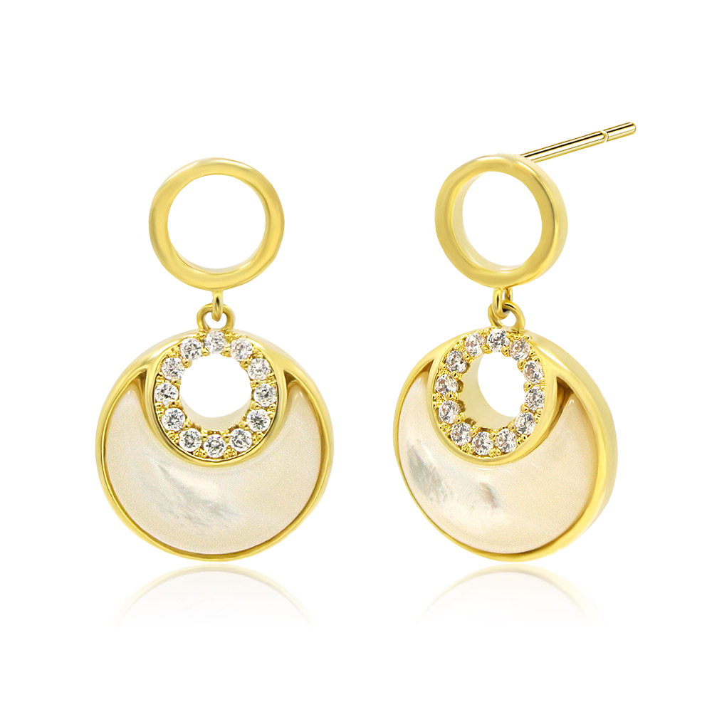 Moon Crescent White Shell Dangle CZ Earrings - Custom Jewelry Manufacturing
