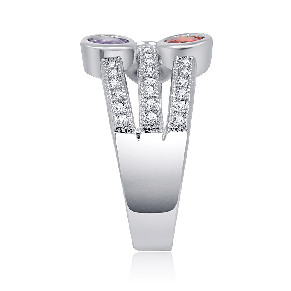 Discover the effervescent charm of our Multi-Gemstone Bubble Ring from the exclusive Cubic Zirconia collection. This tastefully elegant piece is crafted from rhodium-plated brass and features a stunning arrangement of white, orange, and violet cubic zirconia stones. Its unique 'bubbles' band design makes it a perfect right-hand ring for everyday wear or a memorable anniversary gift. Embrace your free-spirited style with this fresh and bubbly accessory, a testament to JR Fashion Accessories' commitment to quality and contemporary design.
