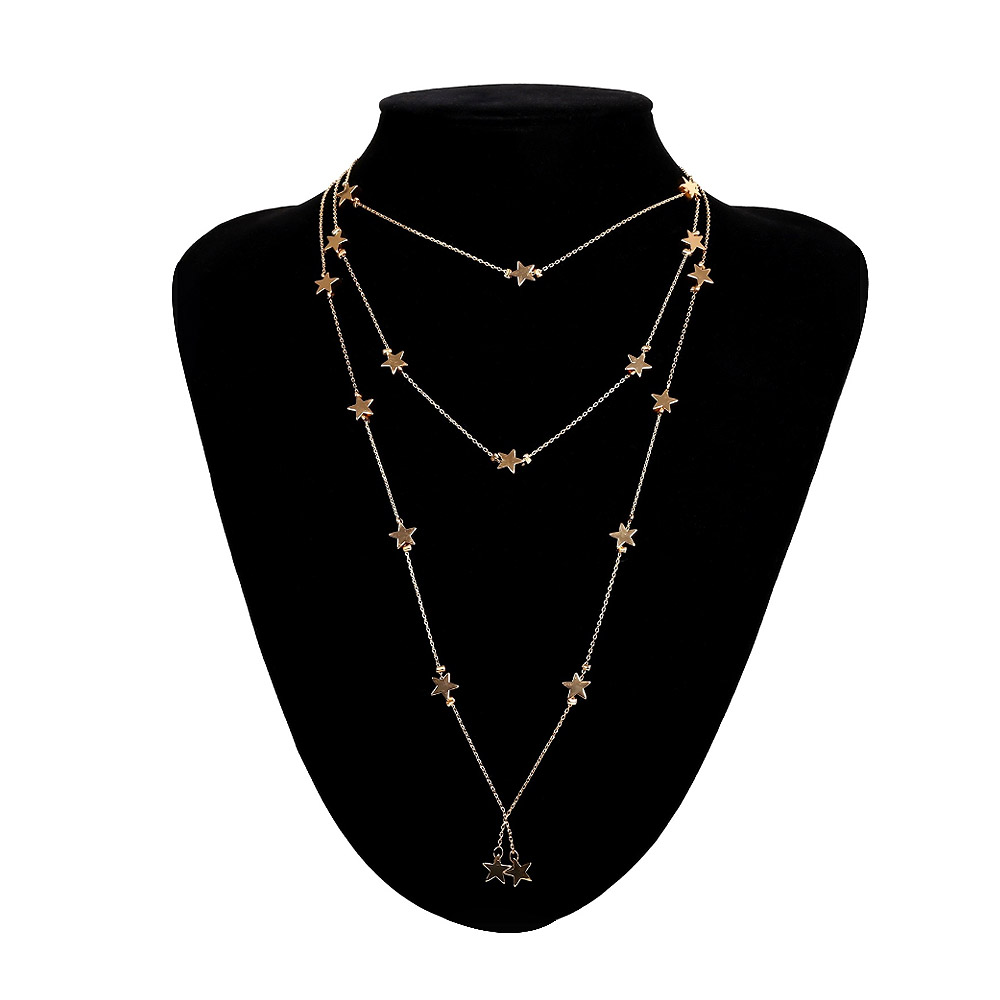Celestial Charm: The Multi-Layer Gold Tone Star Necklace