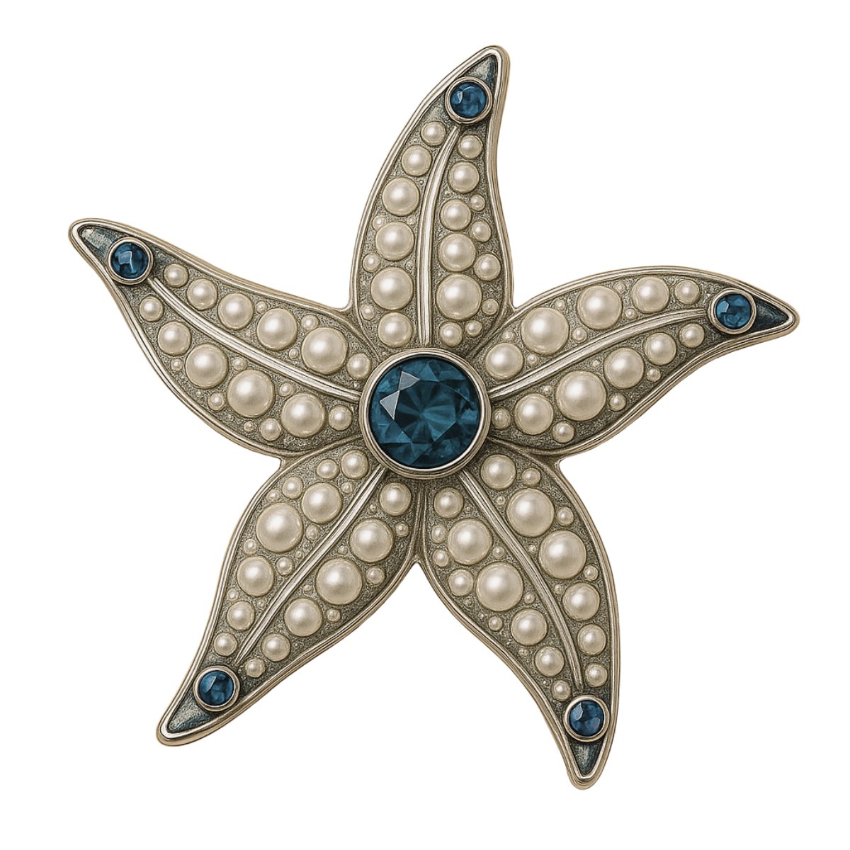 - Starfish Brooch Pin: A symbol of luck and renewal, beautifully embellished with lustrous pearls and sparkling gemstones.