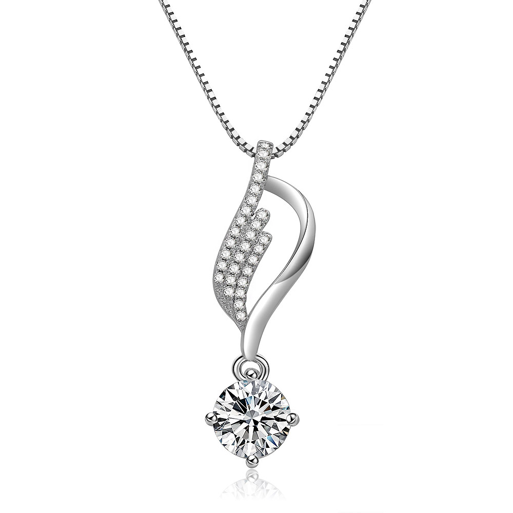 Made from high-quality brass and finished with a lustrous rhodium plating, this necklace offers both durability and a brilliant shine. The centerpiece is a stunning pendant adorned with a sparkling white cubic zirconia, capturing the light beautifully.