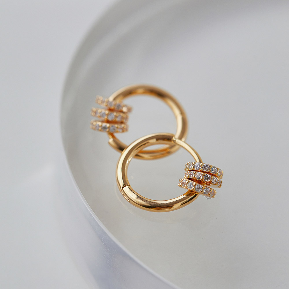 Fall head over heels for these high-shine hoop earrings. From brunch to the boardroom, these Open Circle Earrings With Movable Rings will be your everyday essential. Their sophisticated design features a classic open circle with delicate, movable rings adorned with brilliant white cubic zirconia, adding a touch of dynamic sparkle to your look. Mix and match with layered stud earrings for a modern, stylish statement. Crafted from durable, gold-plated brass, these earrings offer a luxurious feel without the high price tag, making them a perfect choice for your collection.