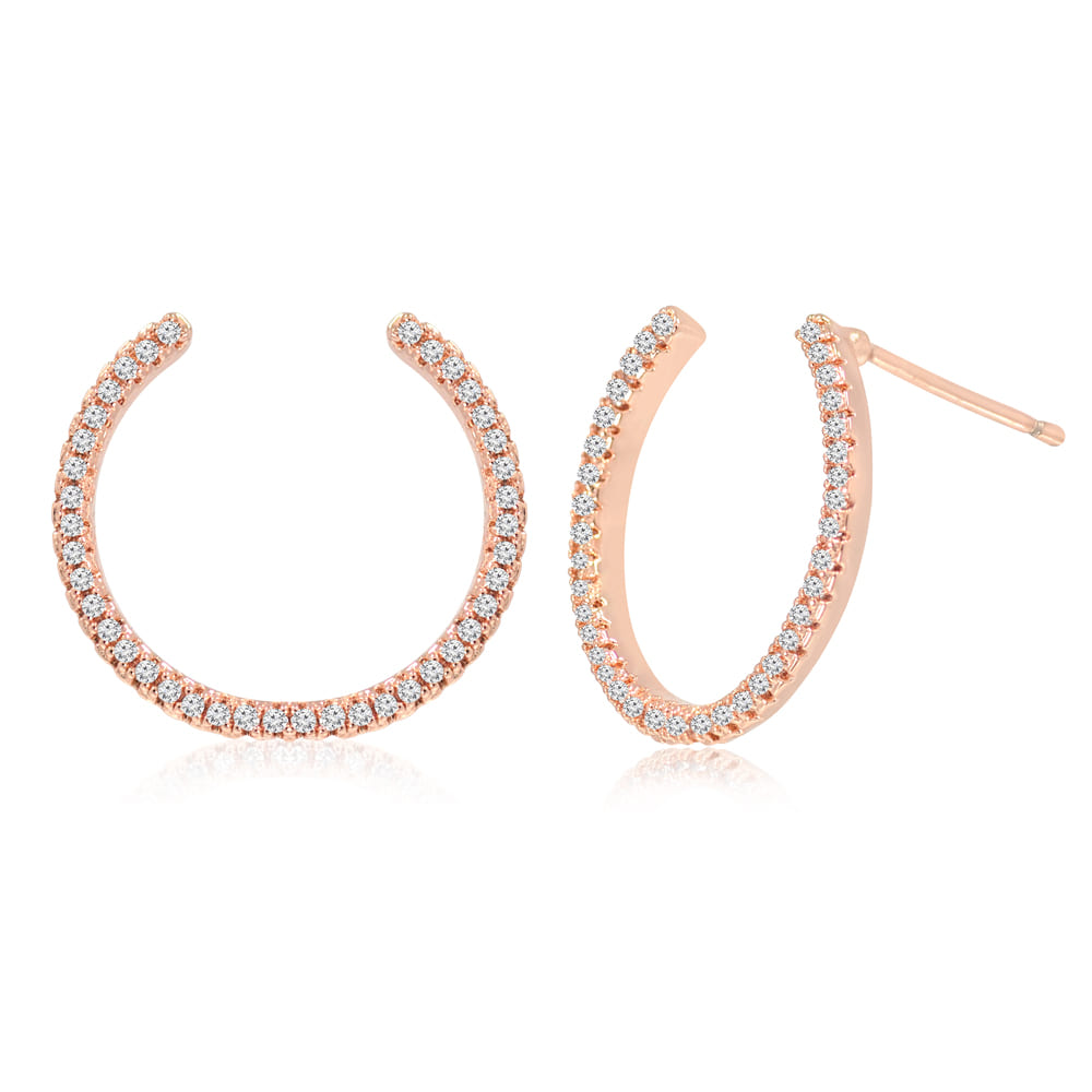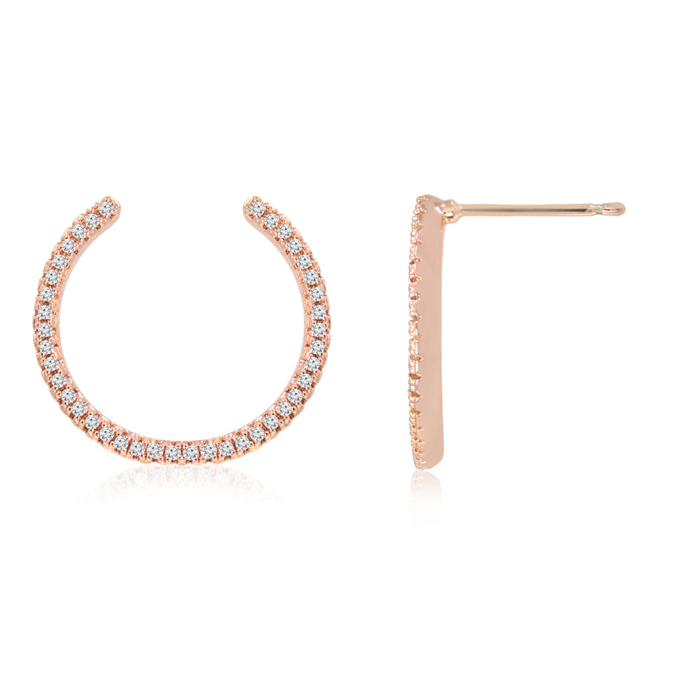 Side view of the rose gold Open Circle Stud Earring, highlighting the pave-set cubic zirconia details.
