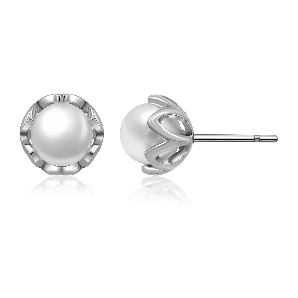 Minimalist 925 Sterling Silver Pearl Ear Studs - Custom Jewelry Manufacturing