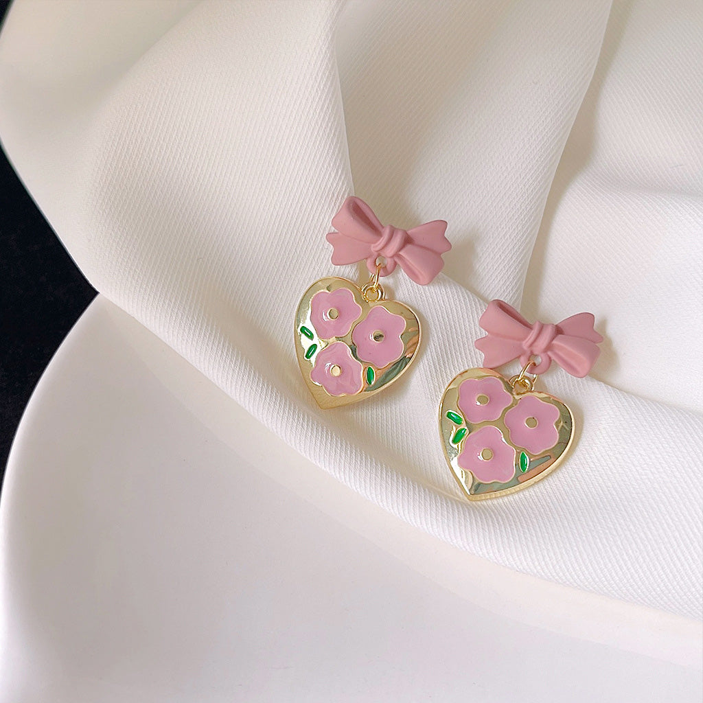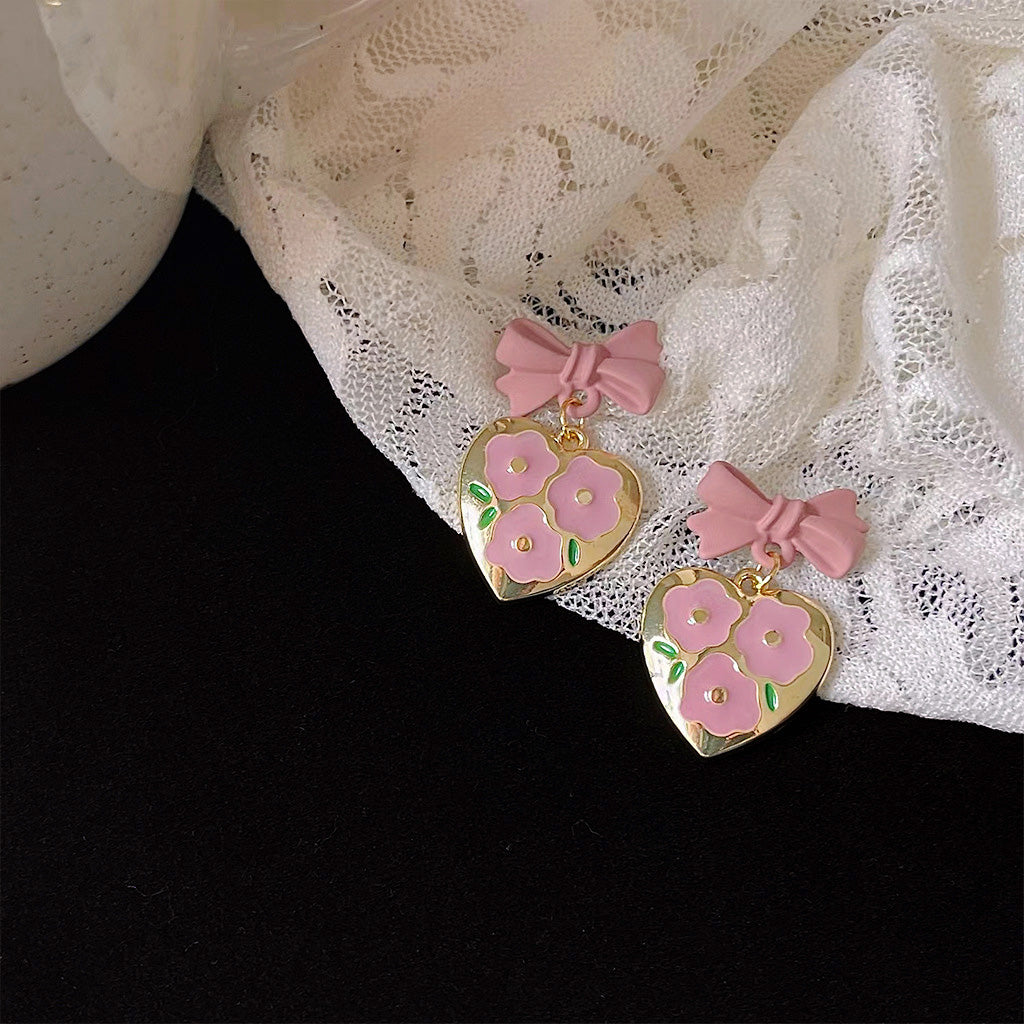 Charming Enamel Floral Heart Earrings