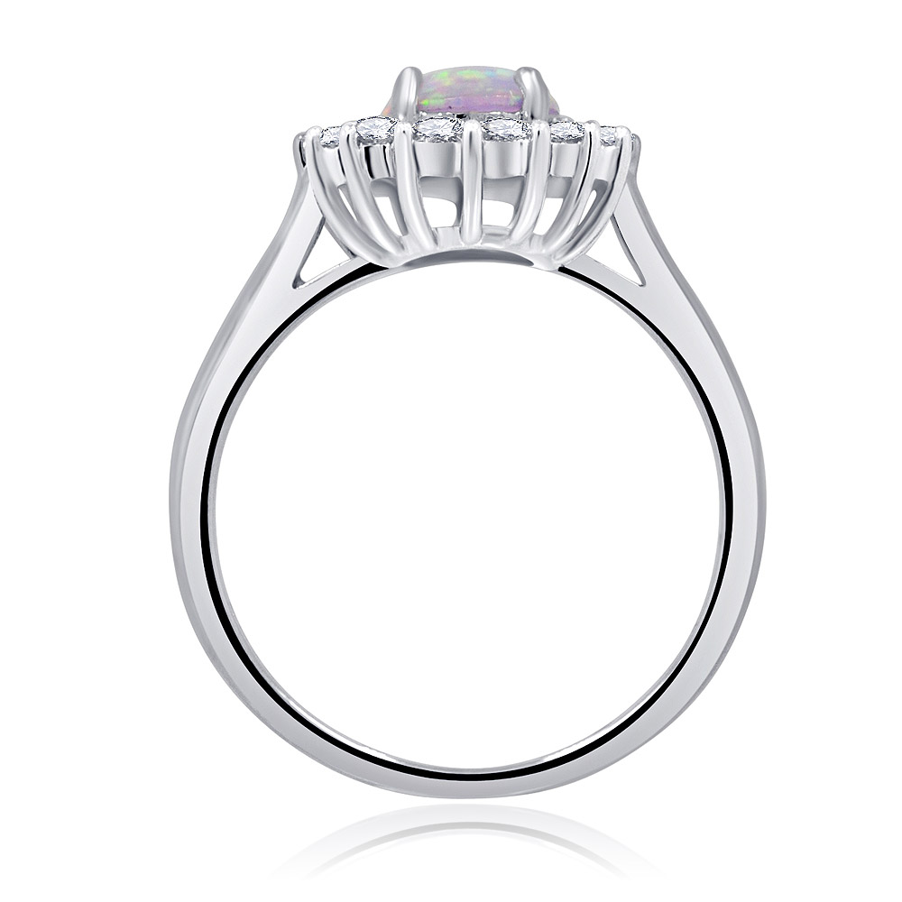 Side view of the Pink Opal Burst White Ring, highlighting the intricate setting of the cubic zirconia.