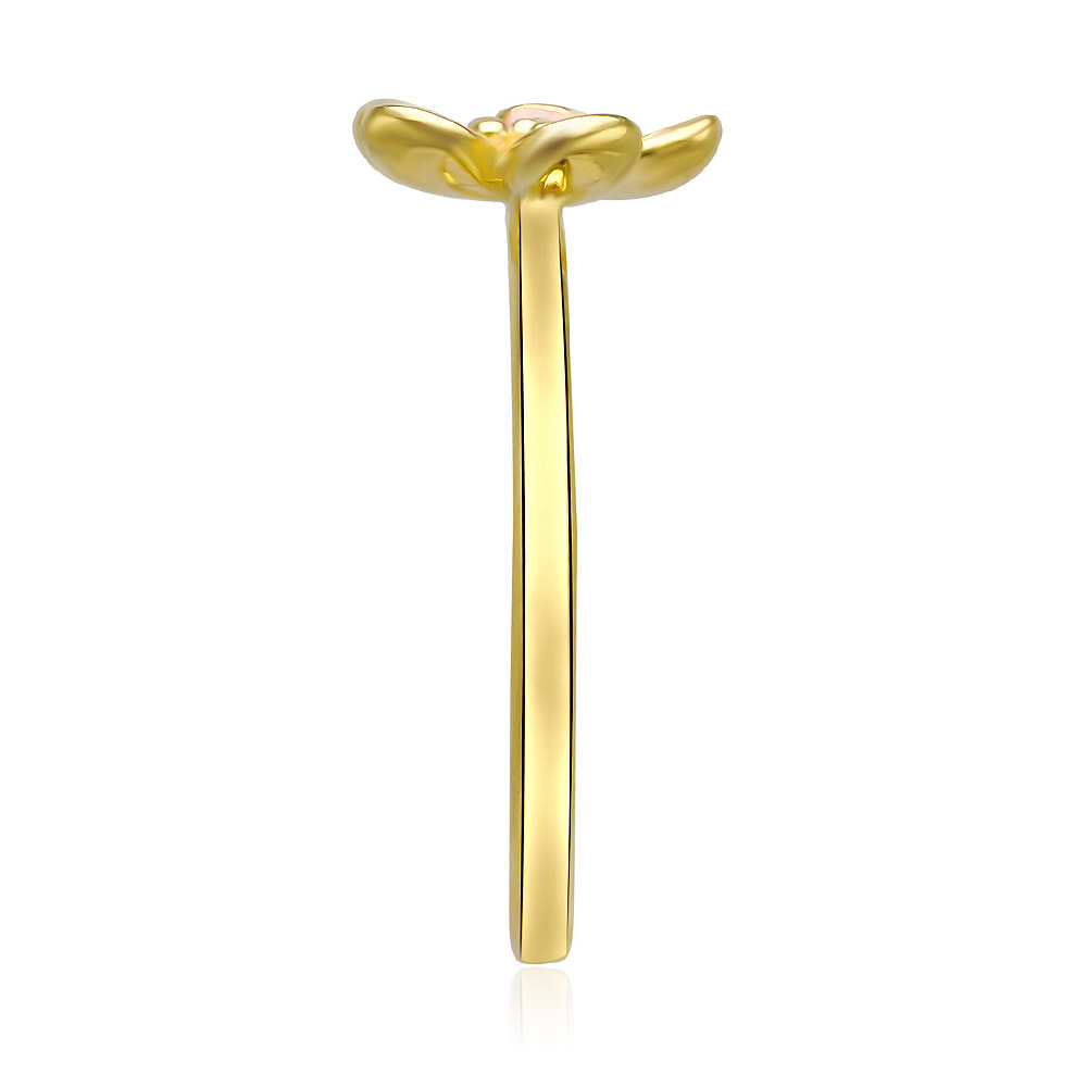A side view of the Pinky Cherry Bloom Gold Plated Ring, showcasing the detailed pink enamel work.