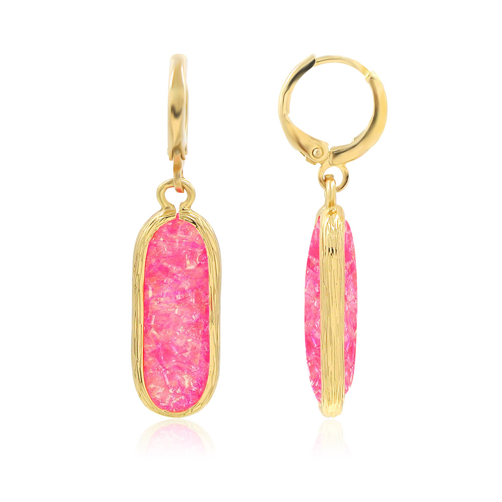 Discover the unique charm of our Pinky Resin Earrings, meticulously handmade for a one-of-a-kind appeal. These dangle earrings feature vibrant, colorful resin set on elegant gold-plated brass French hooks. Each piece is unique due to the handmade process, making them a special gift for any nature lover. They are sold by the pair and come beautifully packaged in a transparent polybag.