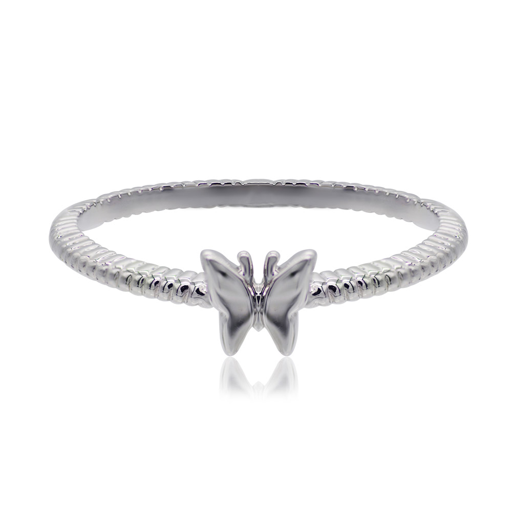 Elegant Rhodium-Plated Butterfly Motif Ring