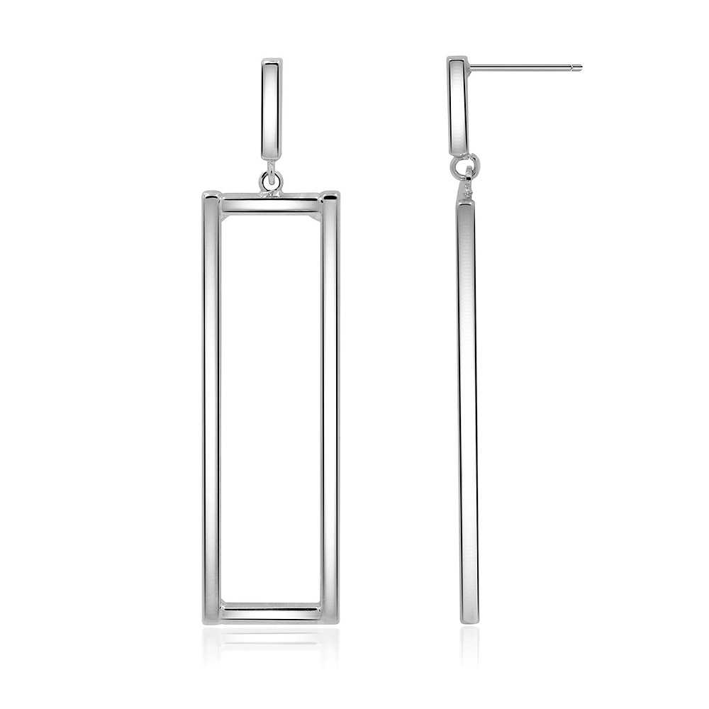 Polished Rhodium Rectangle Long Earrings - Custom Jewelry Manufacturing