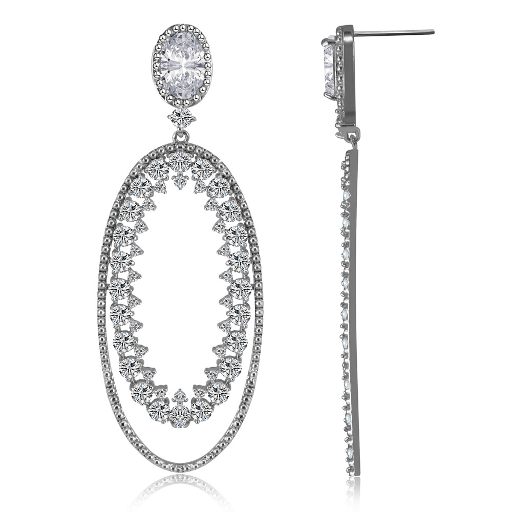 You know you want to look like a star at your next big event. Our Red Carpet Earrings are designed to deliver that unforgettable glamour. We've combined gleaming rhodium-plated metal with glittering cubic zirconia to create a piece of gorgeous jewelry that adds the perfect finishing touch to your look. Whether for a wedding, prom, or any formal occasion, these stunning CZ earrings are your ticket to turning heads.