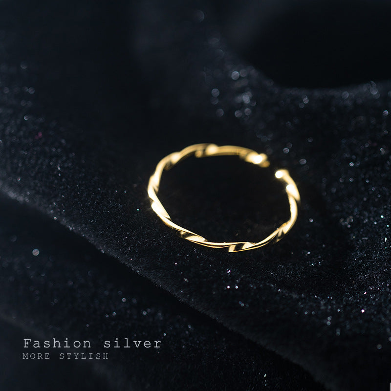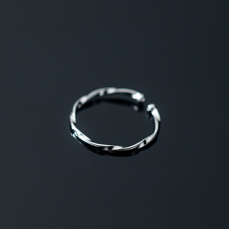 Close-up view of the 925 sterling silver twist ring, highlighting its polished finish and design.