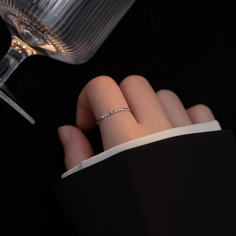 A woman's hand wearing the adjustable 925 silver twist ring, showcasing its elegant fit.