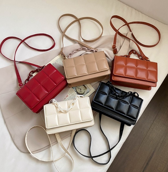 - The retro chain shoulder bag is available in six vibrant colors including red, white, black, blue, pink, and yellow.