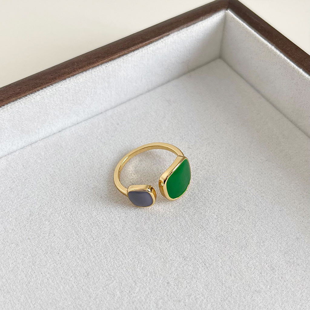 Embrace a touch of vintage charm with this exquisite set of five retro-inspired rings. Each ring is crafted from durable brass with a lustrous gold-plated finish, featuring vibrant square enamel details in beautiful green and blue hues. The open, adjustable design ensures a comfortable and perfect fit for any finger, making them a versatile addition to your jewelry collection. Ideal for stacking or wearing individually, this set offers endless styling possibilities to elevate your everyday look.