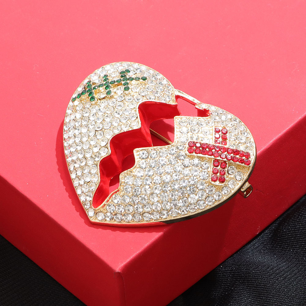 - Product Name: Rhinestone Cracked Heart Brooch