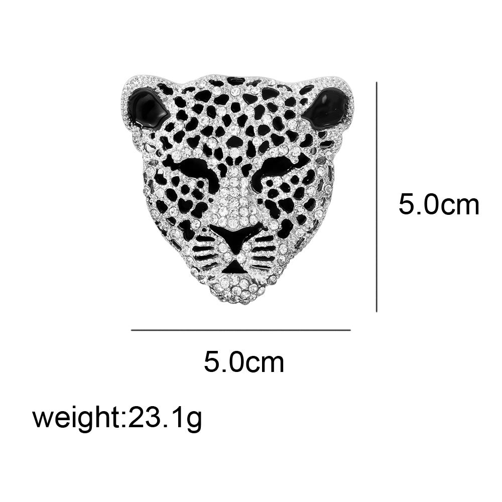 The Rhinestone Hollow Leopard Head Brooch is a bold fashion statement, featuring a meticulously crafted hollow leopard head design. It is encrusted with brilliant clear cubic zirconia and highlighted with striking black enamel details. This piece is available in both gold and silver finishes, making it a versatile accessory for any occasion.