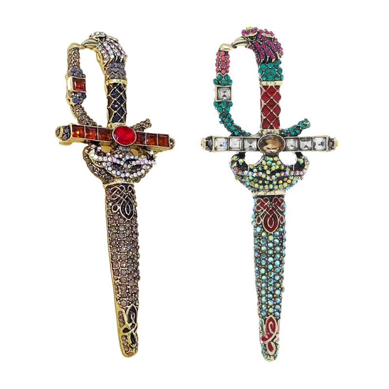 The Rhinestone Retro Sword Crystal Brooch is a bold and striking accessory designed to add a touch of vintage charm and elegance to any outfit. Featuring a sword-shaped design, this brooch is encrusted with sparkling rhinestones that create a dazzling effect. Whether you're dressing up for a formal event or adding a unique accessory to your everyday style, this brooch is the perfect statement piece. Available in two stunning color options, it is suitable for both men and women, offering a versatile and stylish look for all.