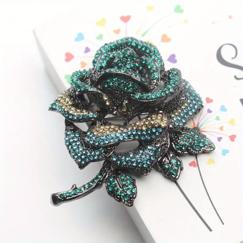This luxurious rhinestone rose brooch is a must-have for those who appreciate sophisticated fashion. It's incredibly versatile: