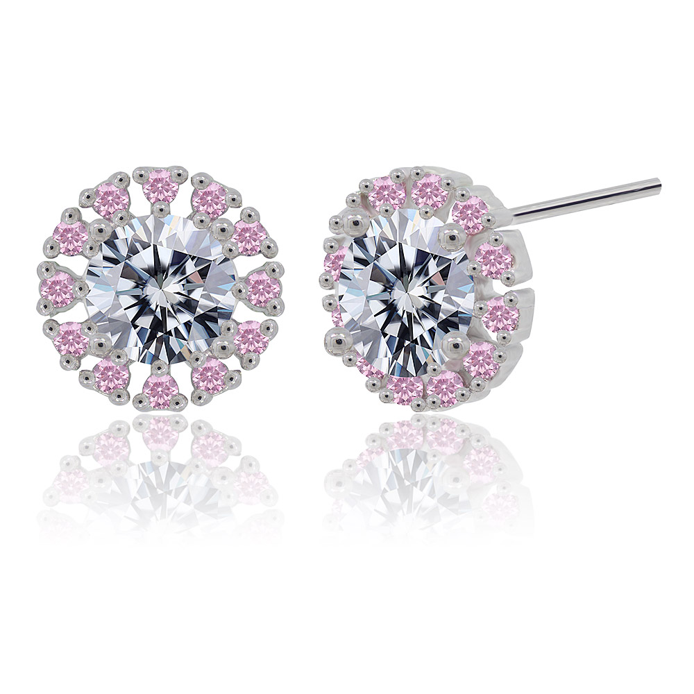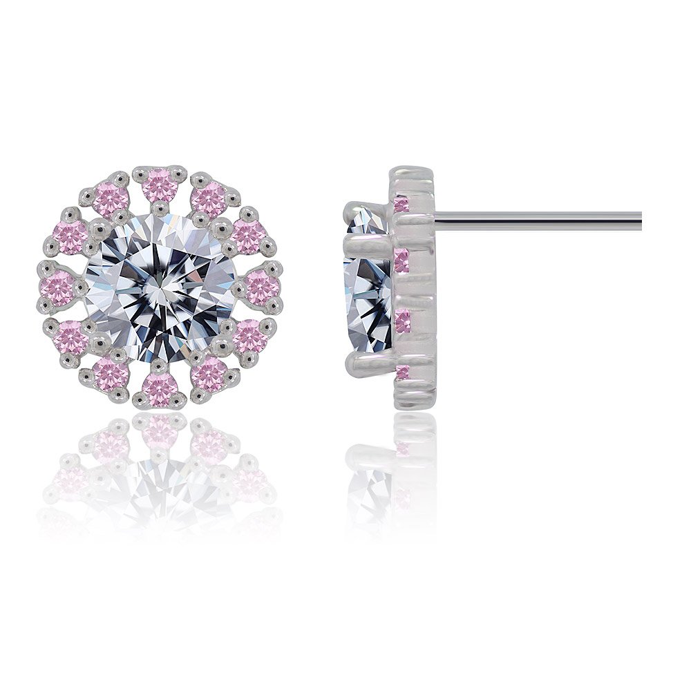 Rhodium Round Pink Cubic Zirconia Earring - Custom Jewelry Manufacturing