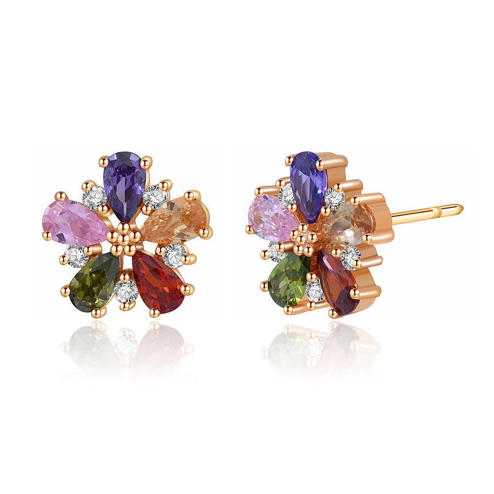 Rose Gold Multi-Col Flower Stud Earring - Custom Jewelry Manufacturing