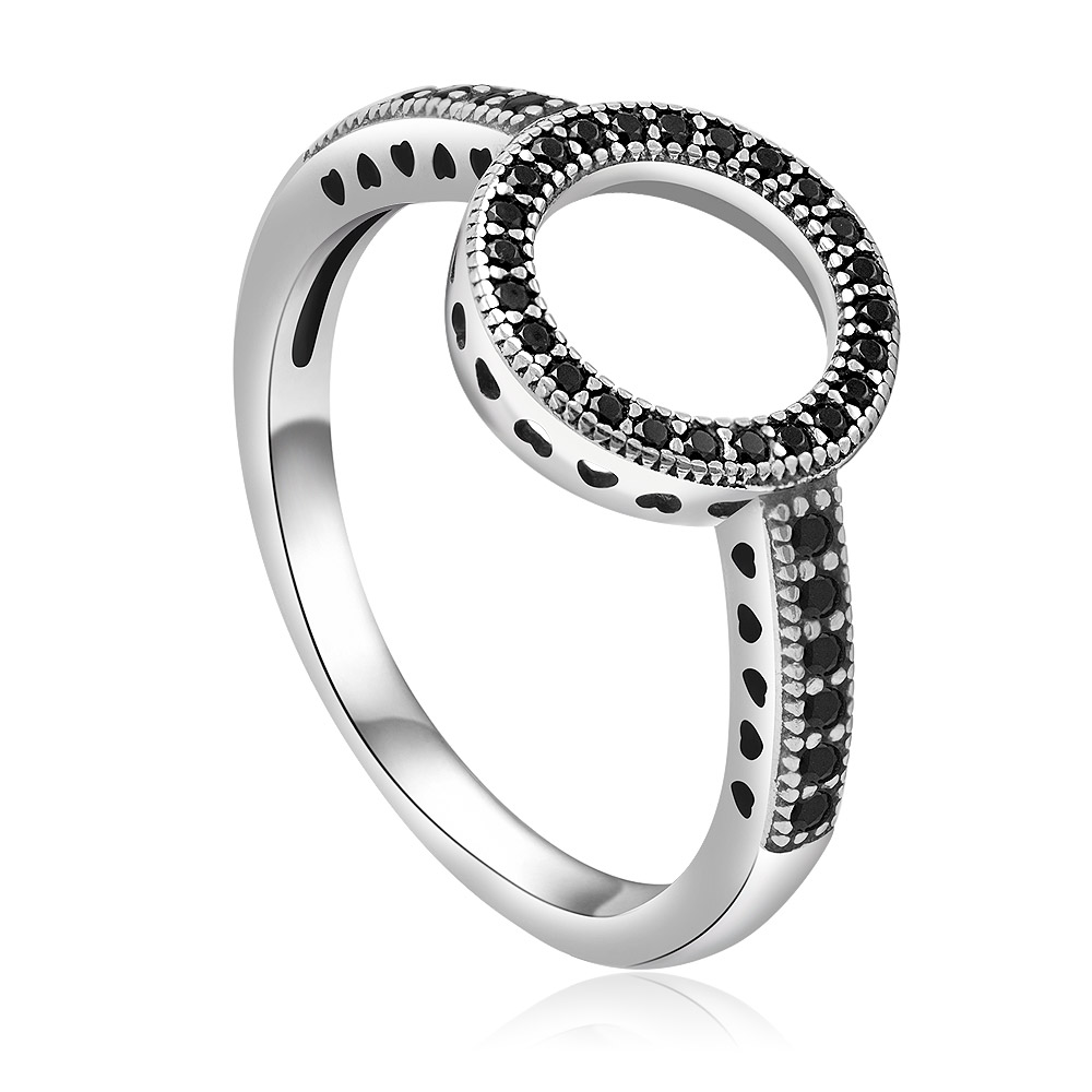 This Round Silhouette Black CZ Ring (Style Number: SRP01-S-Z-00930) is a standout piece from our Cubic Zirconia collection. Made from 925 Sterling Silver and finished with Oxidized Silver plating, it features striking black Cubic Zirconia stones. The intricate design with cut-out hearts offers a unique blend of modern style and classic elegance.
