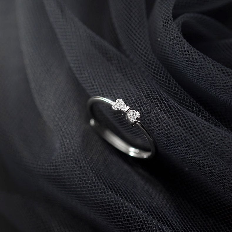 Another perspective of the sterling silver bow ring highlighting its sparkle.