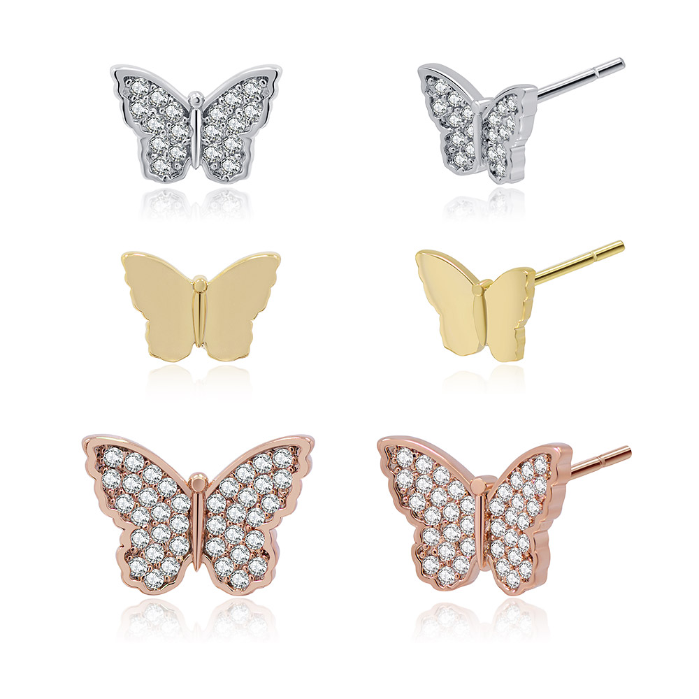 - A larger butterfly stud (11x7mm) featuring intricate cubic zirconia detailing.