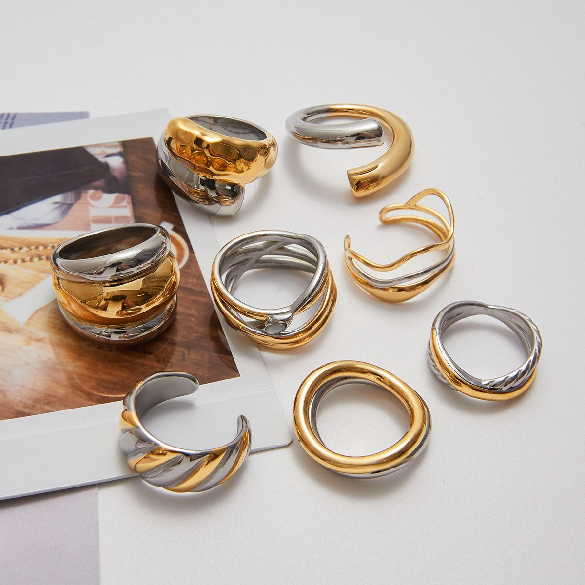 - Complete Set: Includes 5 assorted two-tone rings for versatile styling.