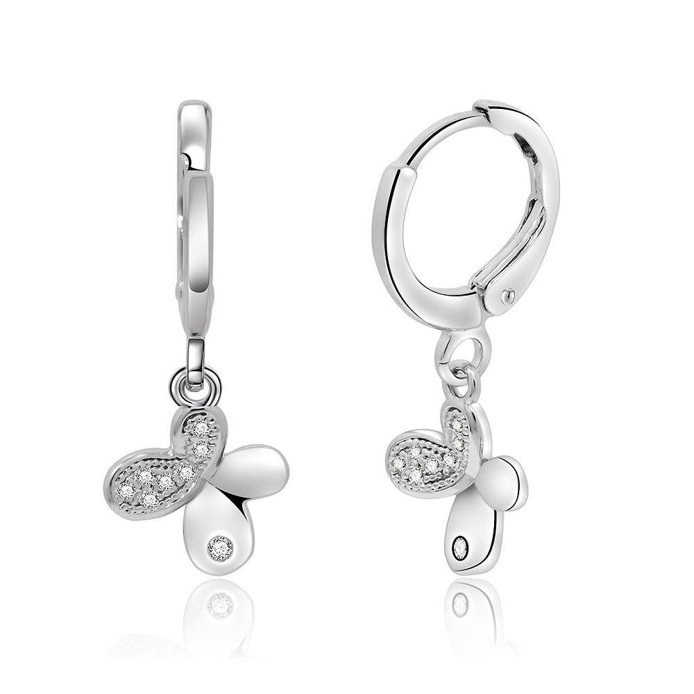 - An alternative view of the Silver Butterfly Drop Earring, highlighting the clear cubic zirconia stones on its delicate butterfly wings.
