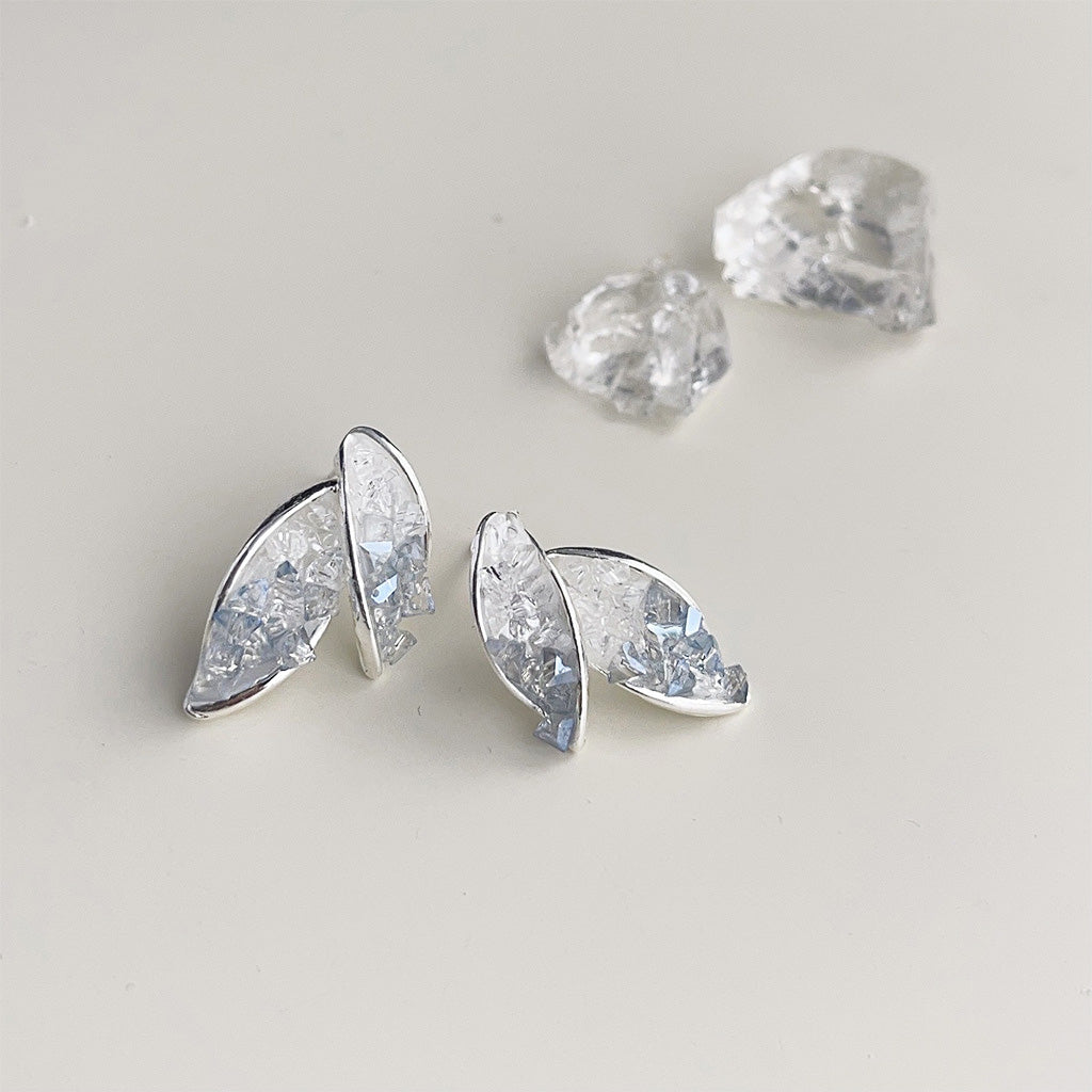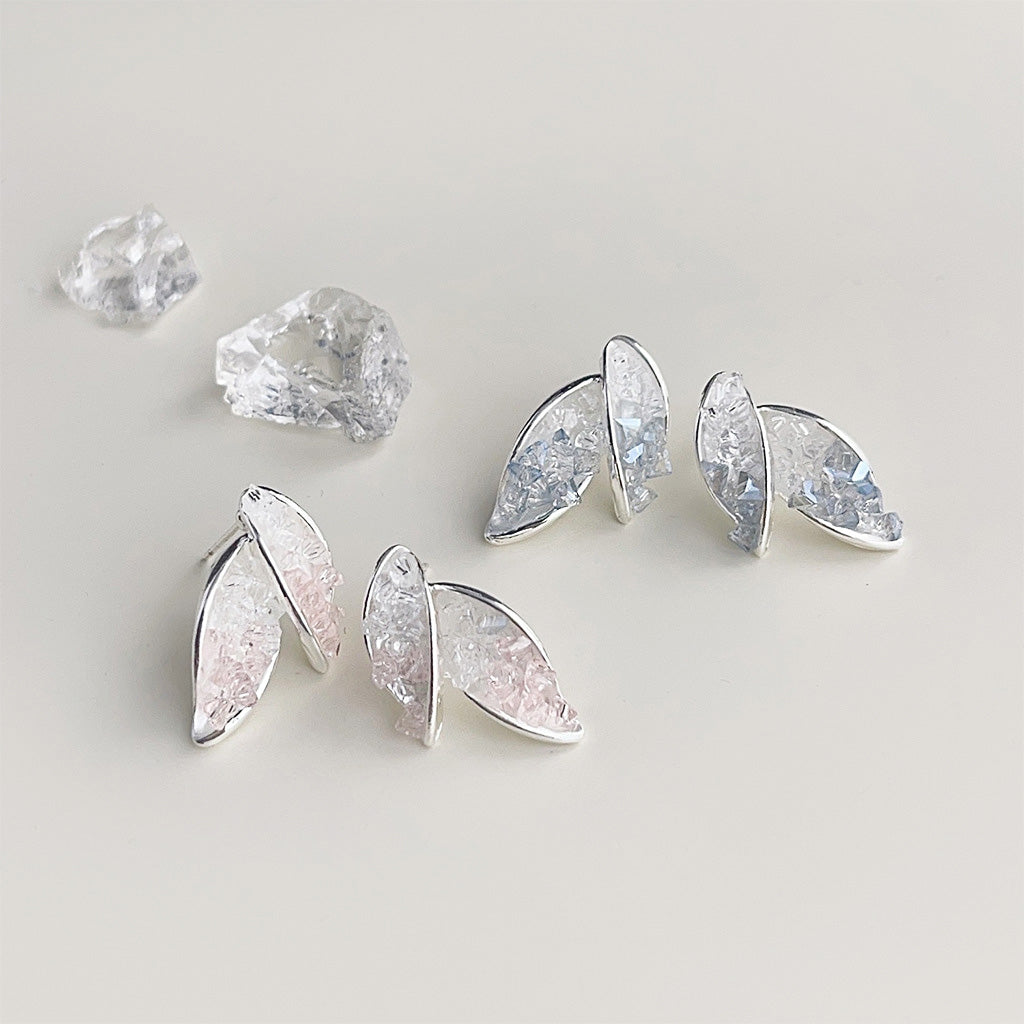 - Product Name: Silver Plated Clear Crystal Glass Leaf Shape Stud Earrings