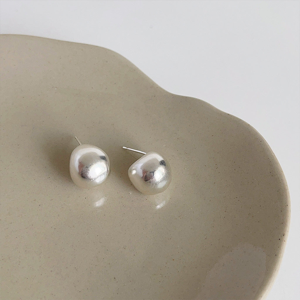- Detailed close-up of the silver-plated small pea button stud earring.