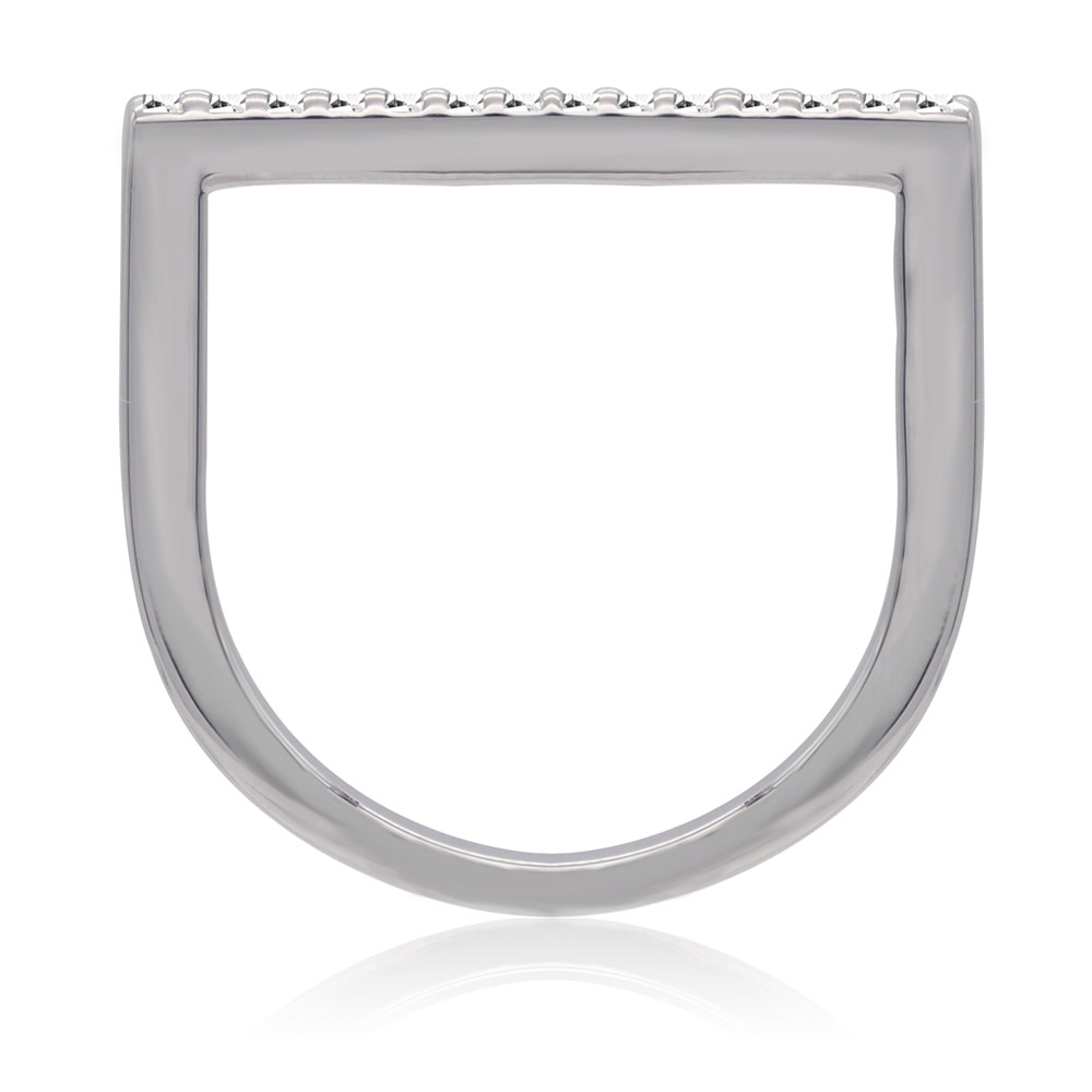 - Side profile of the Slender White Gold CZ Ring, highlighting its slender band and rhodium-plated brass construction.