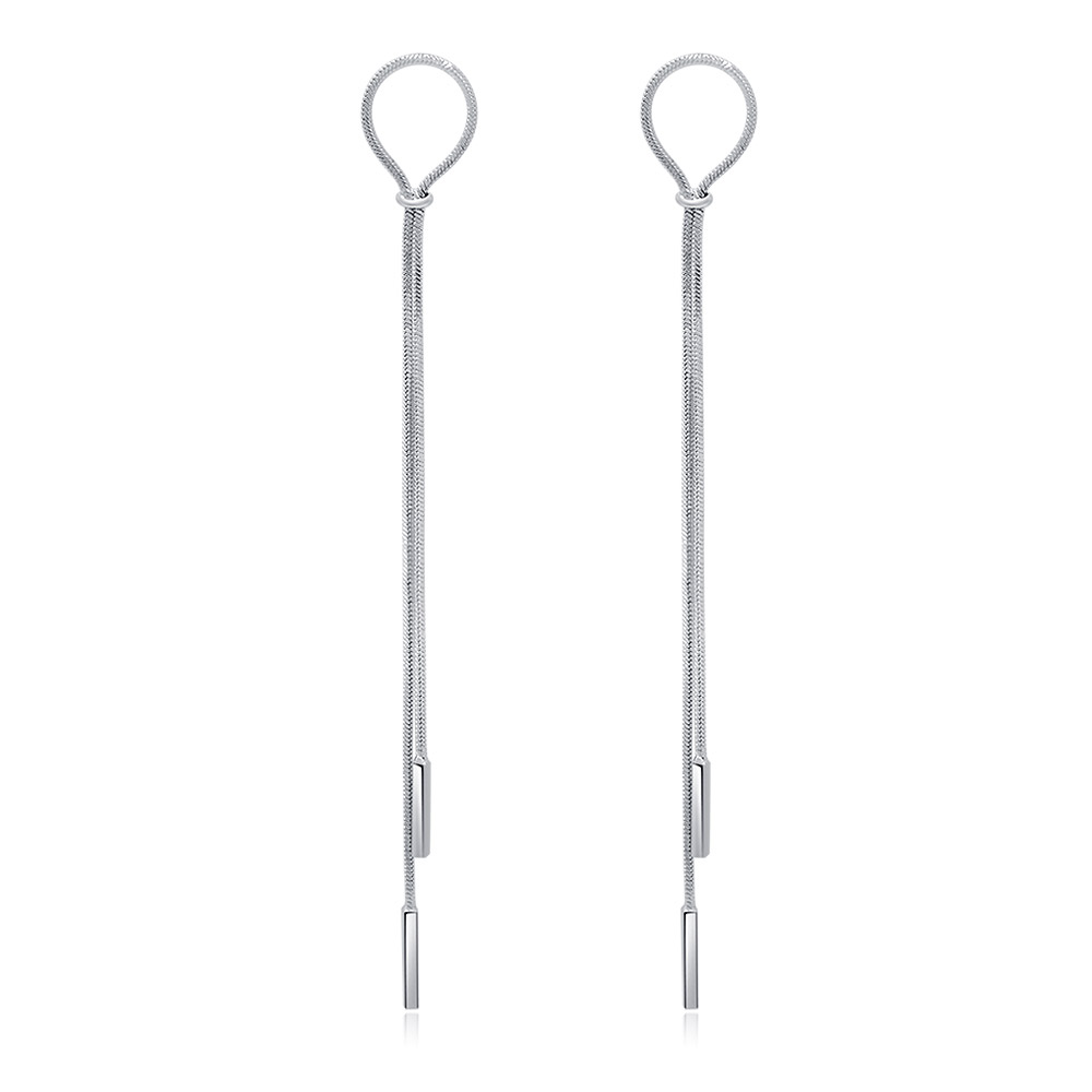 Introducing the Snake Chain Dangling Earrings from JR Fashion Accessories, a masterpiece of modern design and minimalist charm. These artfully created earrings feature a unique double snake chain that dangles gracefully, catching the light with every movement. The sleek, polished finish on the rhodium-plated brass offers a luxurious look that is both contemporary and timeless.