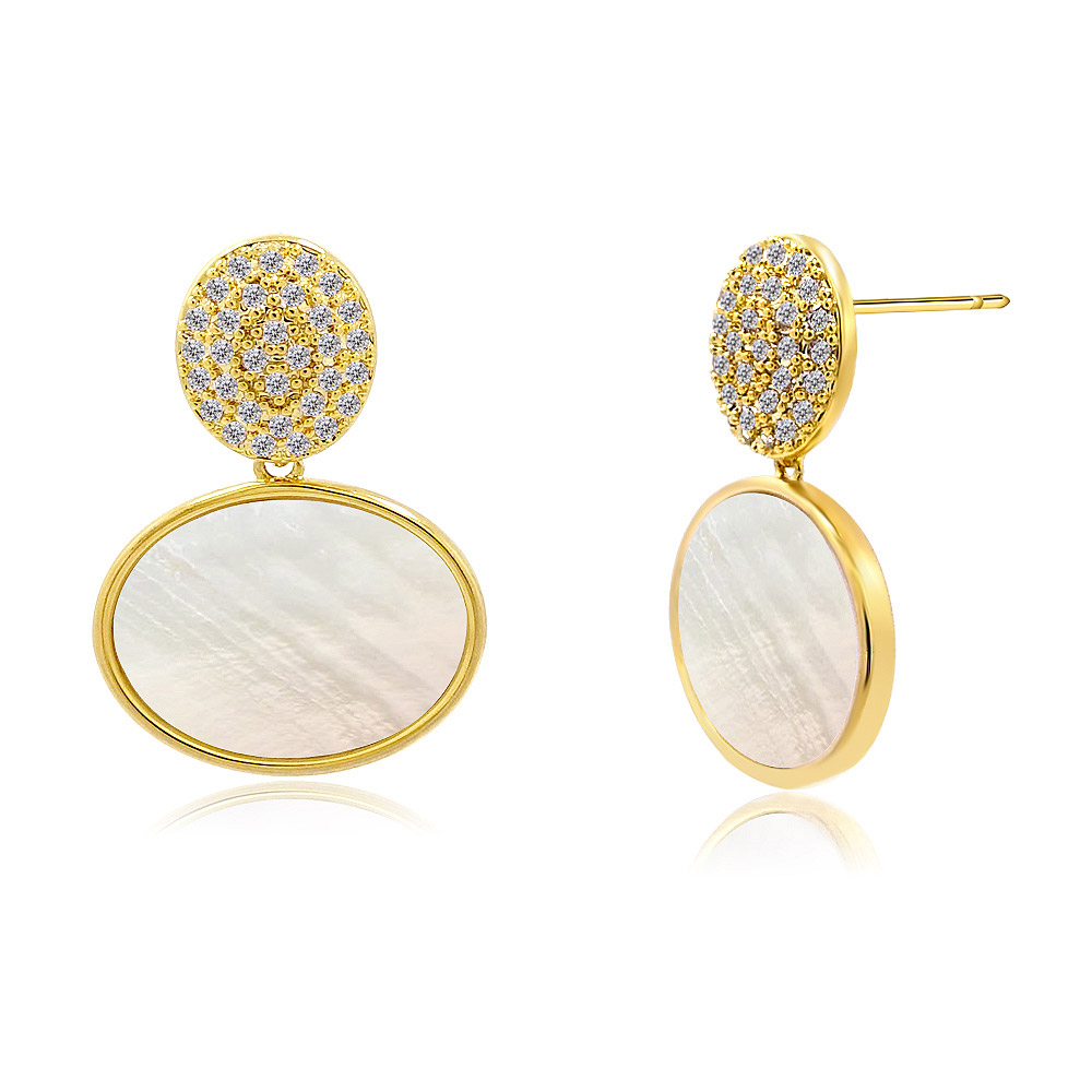 Elegant Brass Earrings with Cubic Zirconia and Shell Accents