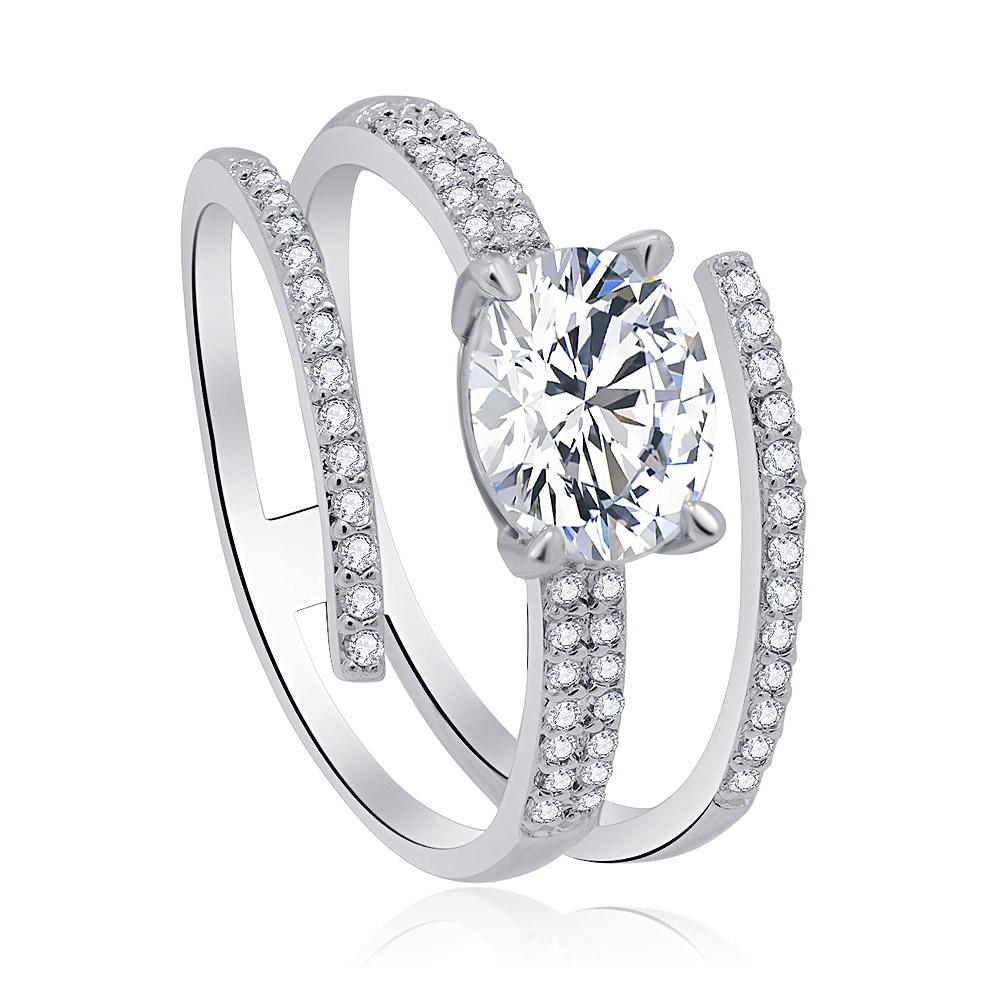 Chic Engagement Ring with Pave Line Cubic Zirconia