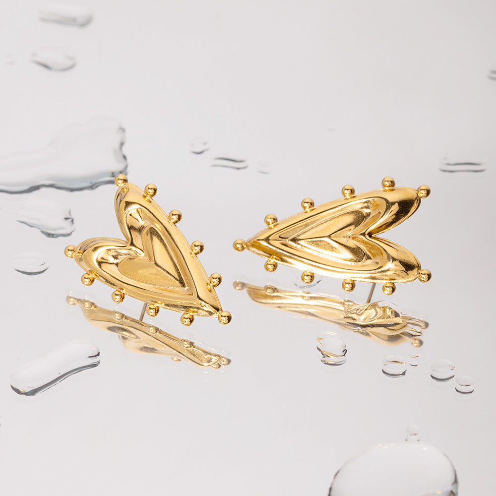 Stainless Steel 18k Gold Half 3D Sharp Heart and Sphere Stud Earrings (5 Pairs) - Custom Jewelry Manufacturing