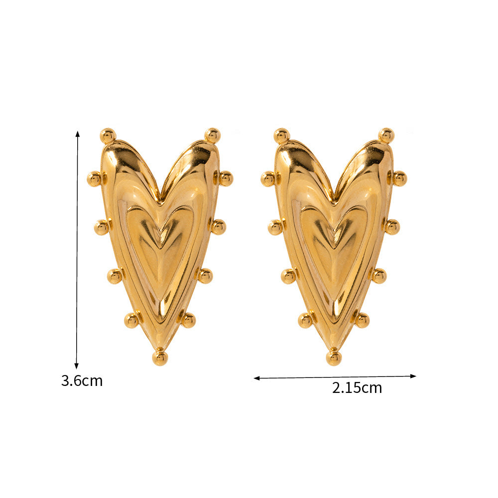 - Product Name: Stainless Steel 18k Gold Half 3D Sharp Heart and Sphere Stud Earrings