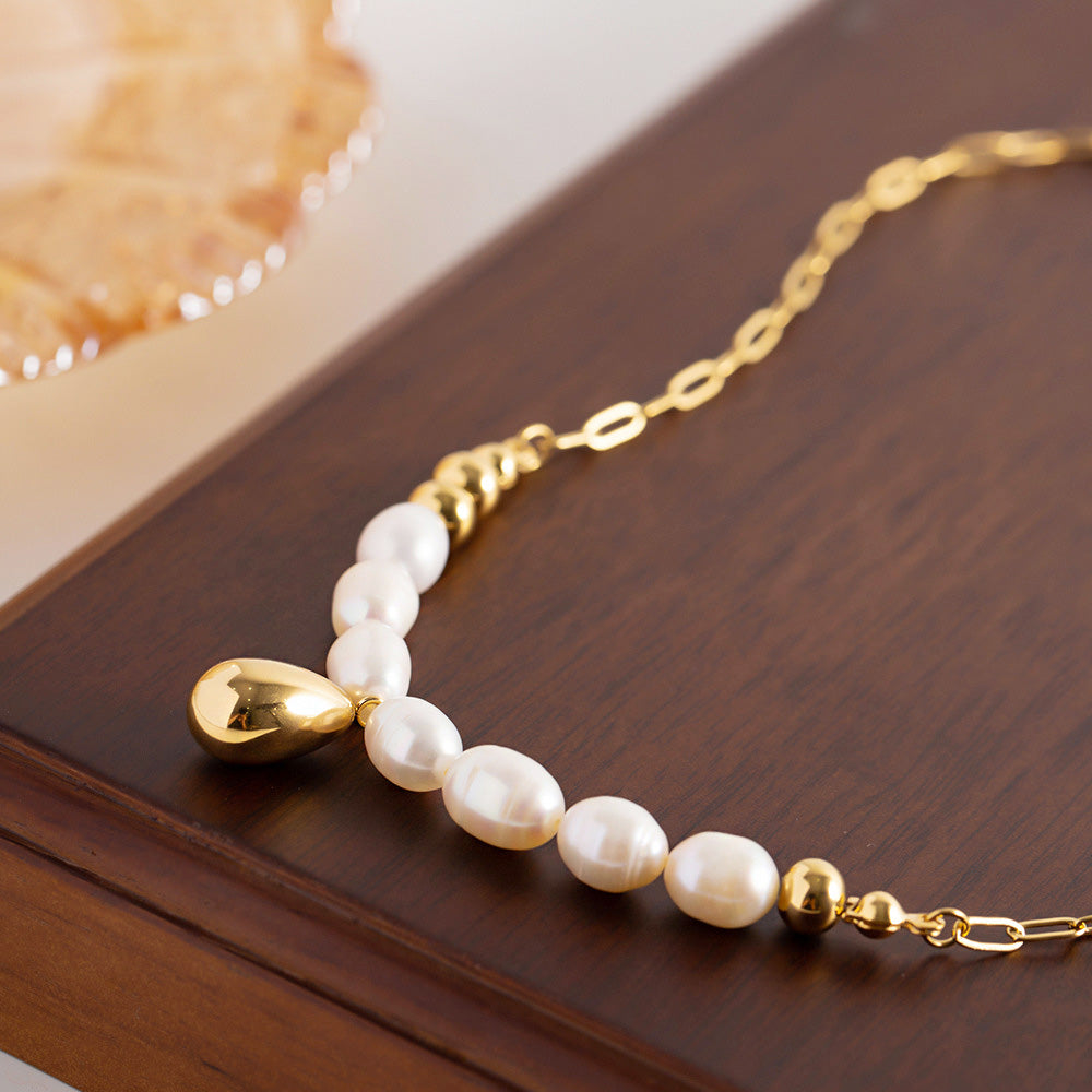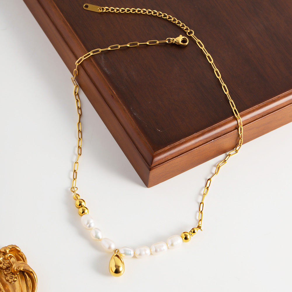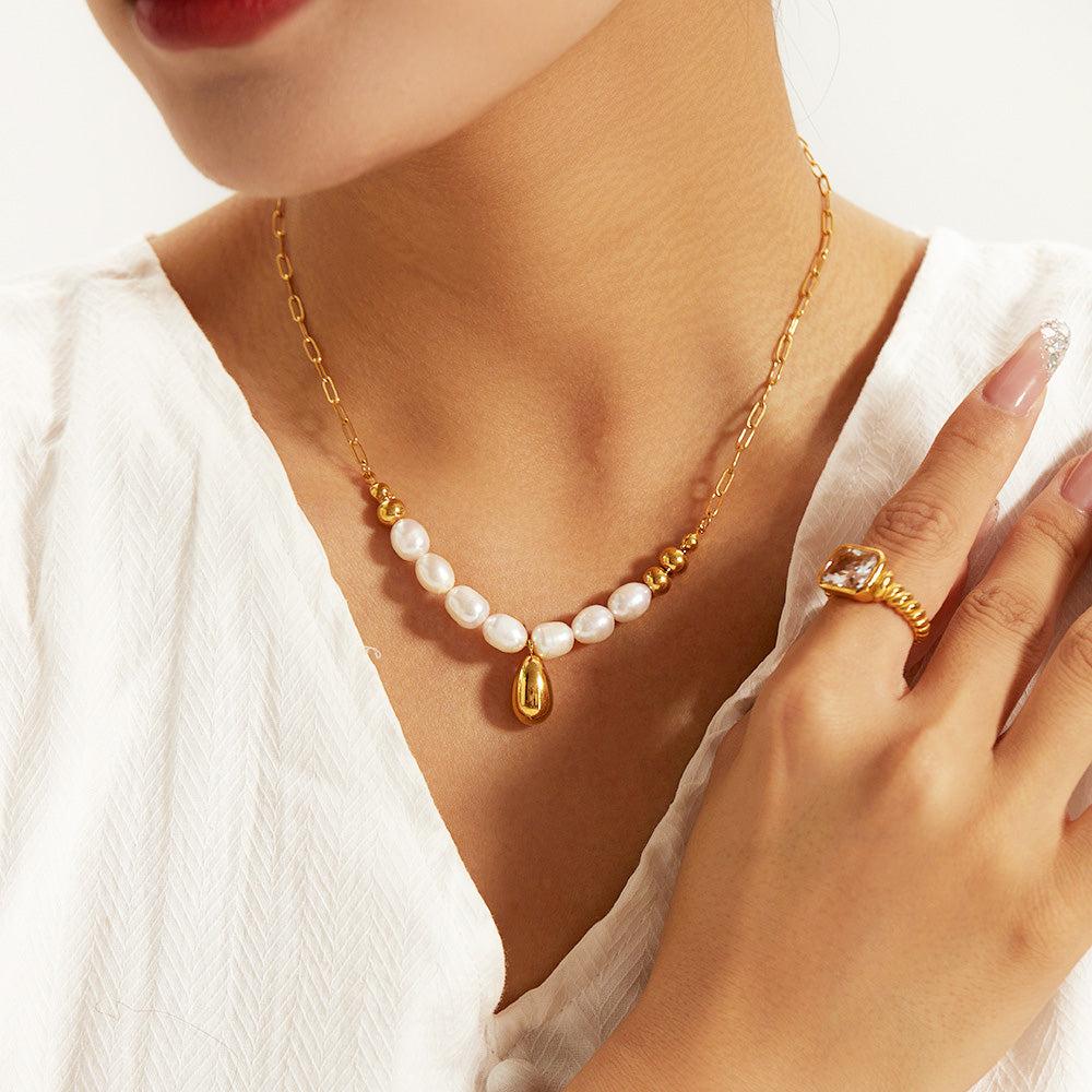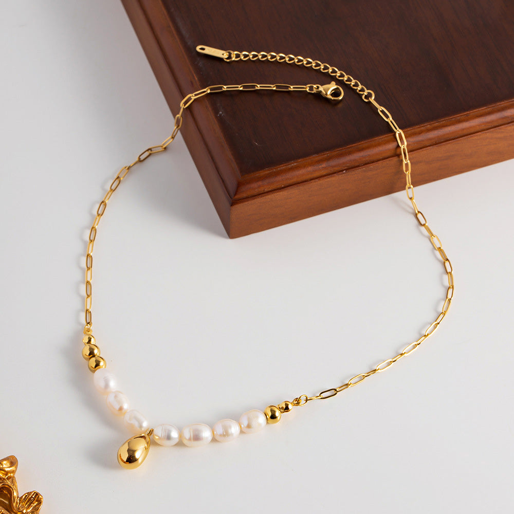 - Product Name: Stainless Steel Baroque Pearl Pendant Choker Necklace