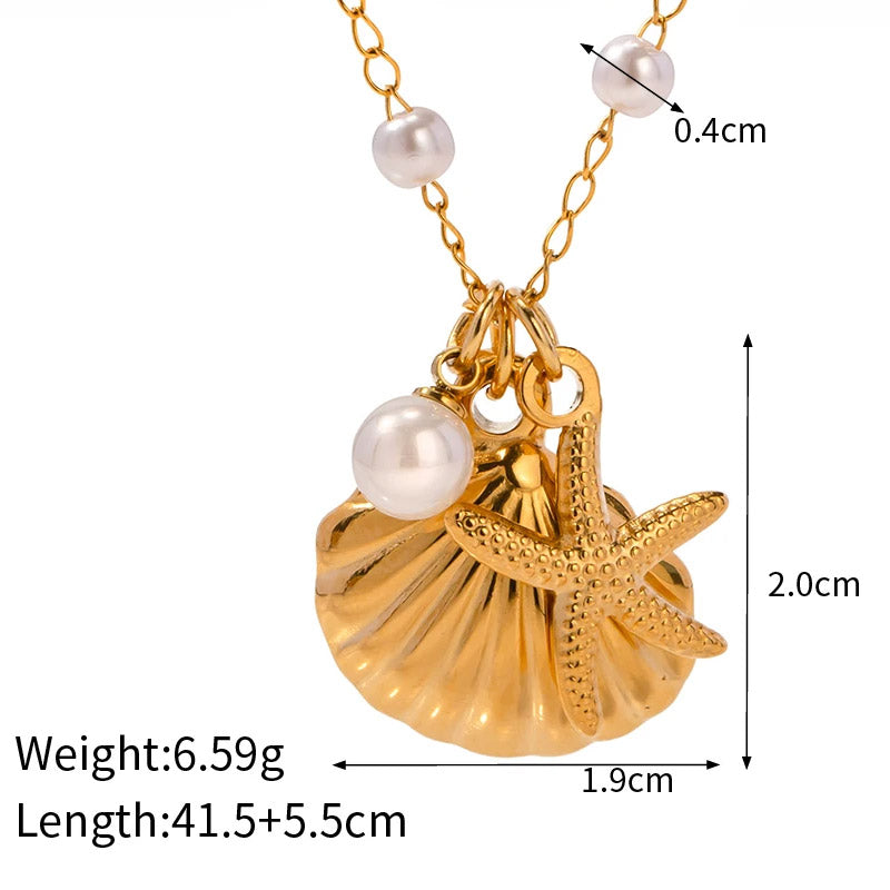 Stainless Steel Beach Jewellery Starfish Shell Pendant with Pearl Chain Necklace Set - Custom Jewelry Manufacturing
