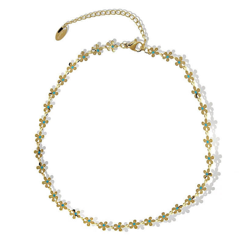 - Product Name: Stainless Steel Blue Enamel Chamomile Flower Charms Chain Necklaces