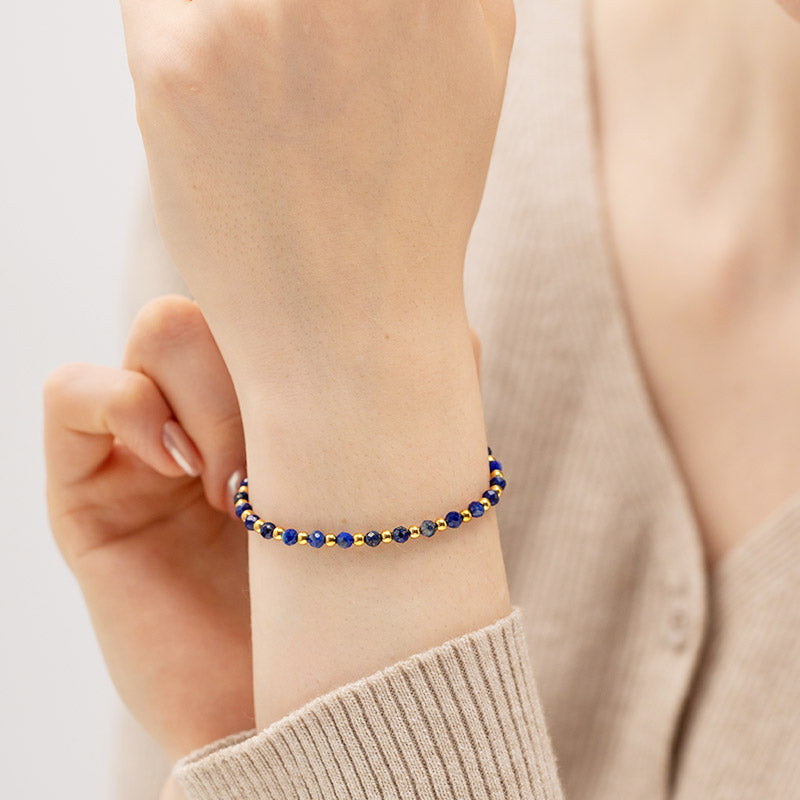 A vibrant blue and gold beaded bracelet adding a pop of color to the wrist.